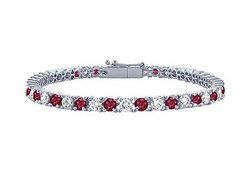This never ending chain of alternating Rubies and brilliant diamonds symbolizes your timeless love. Crafted in platinum & held in a prong setting this tennis bracelet has a total gem weight (TGW) of 1.50 carat. A great way to honor your union.