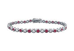 Get caught in the rapture of rubies and diamonds. Radiant round rubies alternate with brilliant-cut diamonds in rich platinum bezel-setting. With gems consistent all around it symbolizes your eternal love. This tennis bracelet has a total gem weight (TGW) of 4.00 ct.
