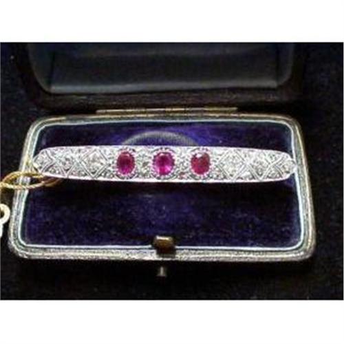 <tr><td>Title:Ruby and diamond bar pin in platinum.</td></tr>