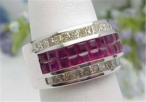 Ruby and diamond ring 1.95Ctw princess cut rubies and 1.06Ctw princess cut diamonds 14kt white gold 12.3gr size 6