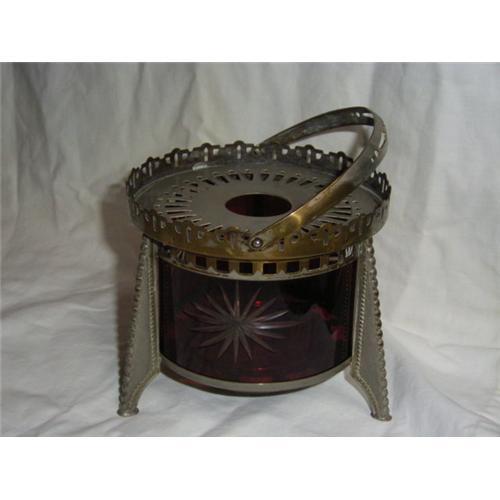 <tr><td>Title:Ruby colored engraved teapot warmer</td></tr>
