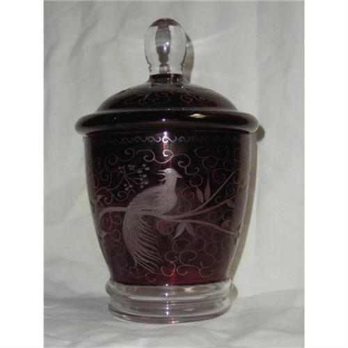 <tr><td>Title:Ruby engraved bohemian Bonbon pot</td></tr>