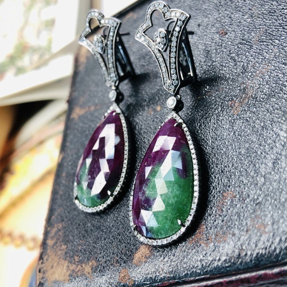 TITLE DESCRIPTION: Intriguing Ruby in Zoisite & amp; Diamond Earrings 18K