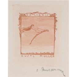 EX-LIBRIS-RADIERUNGEN. Illustrated with 10 original signed etched bookplates. 4to, loosely housed in a cloth backed yellow board portfolio, ink and pen numbers to front, internally clean. Limited to 150 numbered copies. Scarce.