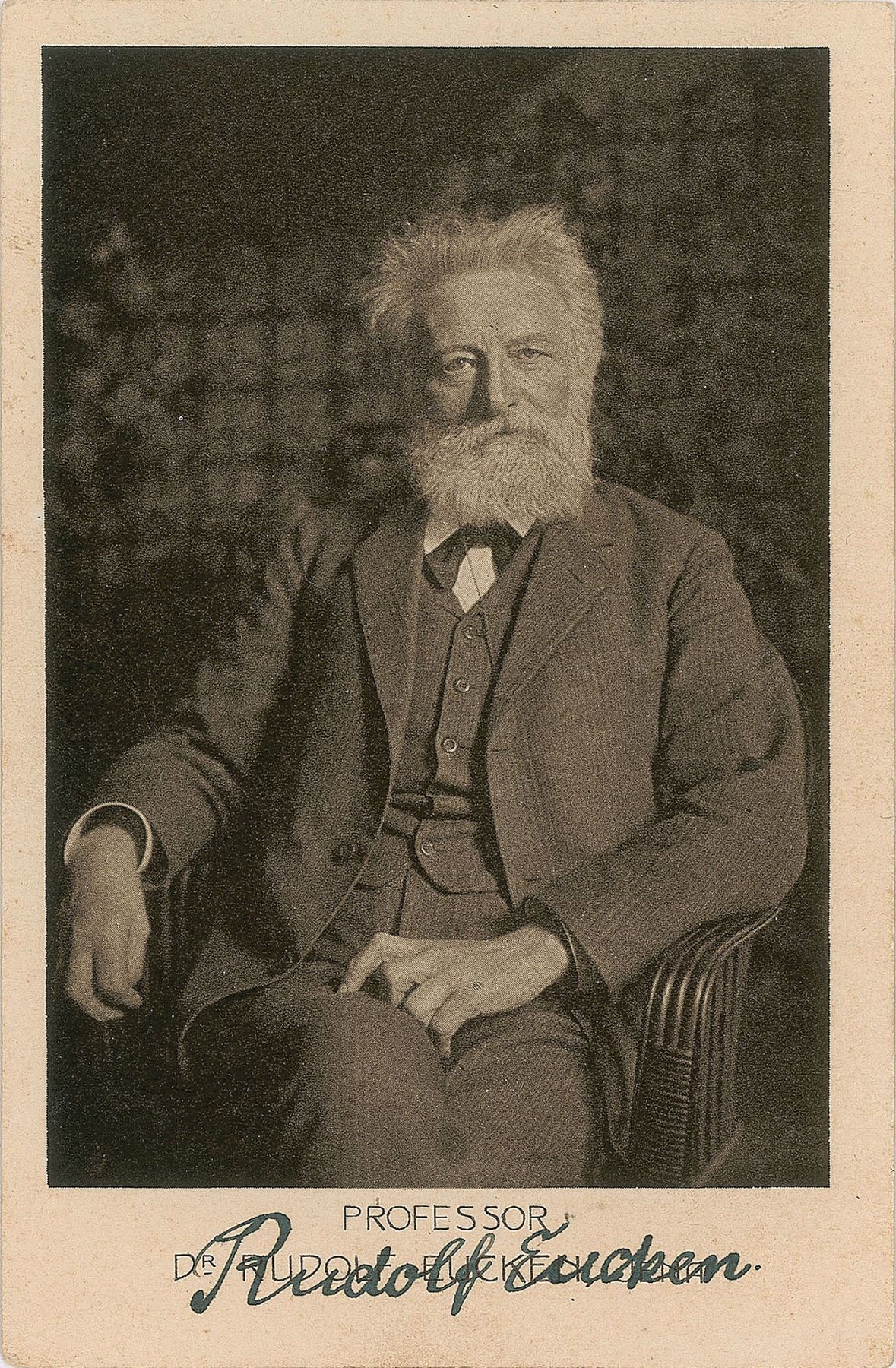 German philosopher (1846–1926) and the recipient of the 1908 Nobel Prize for Literature. Uncommon 3.5 x 5.5 postcard photo of Professor Eucken, signed in the lower border in fountain pen; the reverse bears a short ANS by Eucken, dated September 11, 1925. In fine condition.