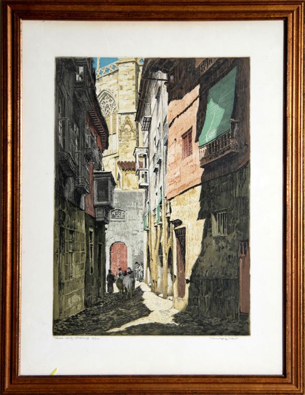 Rudolf Veit, Toledo, Street Scene, Etching and Hand Coloring