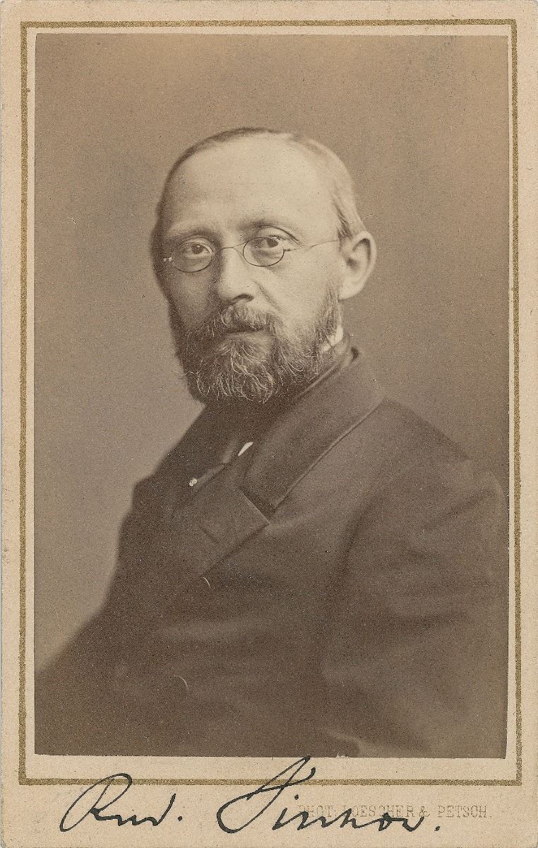 German doctor and politician (1821–1902), dubbed the ‘Father of Pathology,’ who founded the field of social medicine. Rare 2.5 x 4 carte-de-visite portrait of Virchow in a noble head-and-shoulders pose, signed in black ink, “Rud. Virchow.” Published by Loescher & Petsch of Berlin. In fine condition. The first signed photo of Virchow we have ever offered.