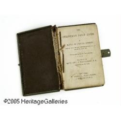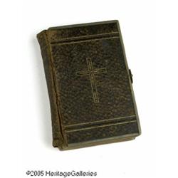 <B>Rudolph Dirk' Prayer Book (P. O'Shea, circa 1888).</B></I> Created in 1897 by Rudolph Dirks, <I>The Katzenjammer Kids</B></I> is the only comic strip to be published continuously in three centuries. Dirks moved from the 'Jammers to <I>The Captain and the Kids</B></I>, another strip featuring Hans and Fritz and the Captain, which was published continually until 1979. This small book, titled <B>The Christian's Daily Guide</B></I>, is a manual of daily devotion that belonged to Rudolph Dirks. The book is well-worn, and includes bookmarks with devotional phrases written both in English and German. The book measures approximately 3" x 5". The spine is loose and the binding along the edge is torn, otherwise this book is in Good condition. <I>From the collection of Rudolph and John Dirks.</B></I>