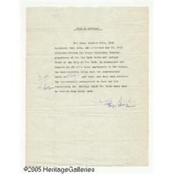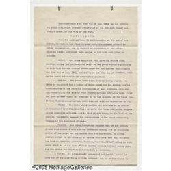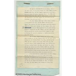 <B>Rudolph Dirks Comic Strip Contracts Lot of 2 (1911-1913).</B></I> You want a piece of comic strip history? You want to know what one of the most successful cartoonists in the world was making in 1911, 1913, 1915, and 1922? And not just <I>any</B></I> successful cartoonist, but the man who played a pivotal role in the development of the comic strip, created those adolescent agents of chaos, <I>The Katzenjammer Kids</B></I>, and eventually <I>The Captain and the Kids</B></I>? Here are two notarized contracts between the Press Publishing Company, proprietor of the <B>New York World</B></I> and Rudolph Dirks of the City of New York. The first contract is dated November 7, 1911 and the second is dated May 12, 1913. There is also an option notification dated October 15, 1917 and a contract memo which is dated October 16, 1922. These historical documents are approximately 8.5" x 11" and in Very Good condition. Dirks defined a vocabulary of comics language and created the most durable of all American comic strips. Here's your chance to possess a part of his legacy. <I>From the collection of Rudolph and John Dirks.</B></I> 4 items