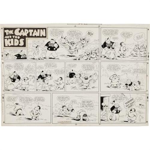 <B>Rudolph Dirks - The Captain and the Kids Sunday Comic Strip Original Art, dated 2-22-53 (United Features Syndicate, 1953).</B></I> One of the true pioneers of the comic strip, Rudolph Dirks drew the apoplectic pranks of the The Captain and the Kids, off-and-on-again, until 1958, when he passed the strip onto his son, John. The image area of this uproarious strip measures 22.5" x 15", and the art is in Very Good condition. <BR><BR><b>Shipping:</b> Flat Material, Large (<a target="_blank" href="http://www.heritageauctions.com/common/shipping.php">view shipping information</a>)