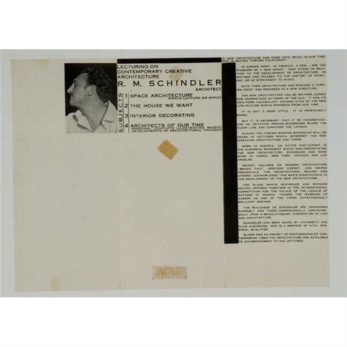 Comprised of numerous personal letters from Schindler to Ms. Janson over a period of about twenty years. Together with several vintage photographs and other Schindler related documents.