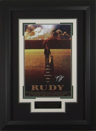 Rudy is a 1993 American biographical sports film directed by David Anspaugh. It is an account of the life of Daniel "Rudy" Ruettiger, who harbored dreams of playing football at the University of Notre Dame despite significant obstacles. In 2005, Rudy was named one of the best 25 sports movies of the previous 25 years in two polls by ESPN. It stars Sean Astin as the title character, along with Ned Beatty, Jason Miller and Charles S. Dutton. The script was written by Angelo Pizzo, who created Hoosiers (1986), which was also directed by Anspaugh. The film was shot in Illinois and Indiana. This is an signed Publicity Masterprint 11x17 inch movie poster with museum Quality Custom Black Framing as shown to an overall size of 22x30. Sean Astin has hand signed this poster. The perfect addition to complement any Home Theater Collection. Witnessed, Examined, and Certified Authentic (Lifetime) by Millionaire Gallery, Inc.