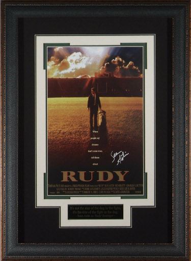 Rudy is a 1993 American biographical sports film directed by David Anspaugh. It is an account of the life of Daniel "Rudy" Ruettiger, who harbored dreams of playing football at the University of Notre Dame despite significant obstacles. In 2005, Rudy was named one of the best 25 sports movies of the previous 25 years in two polls by ESPN. It stars Sean Astin as the title character, along with Ned Beatty, Jason Miller and Charles S. Dutton. The script was written by Angelo Pizzo, who created Hoosiers (1986), which was also directed by Anspaugh. The film was shot in Illinois and Indiana. This is an signed Publicity Masterprint 11x17 inch movie poster with museum Quality Premium Leather Framing as shown to an overall size of 22x30. Sean Astin has hand signed this poster. The perfect addition to complement any Home Theater Collection. Witnessed, Examined, and Certified Authentic (Lifetime) by Millionaire Gallery, Inc.
