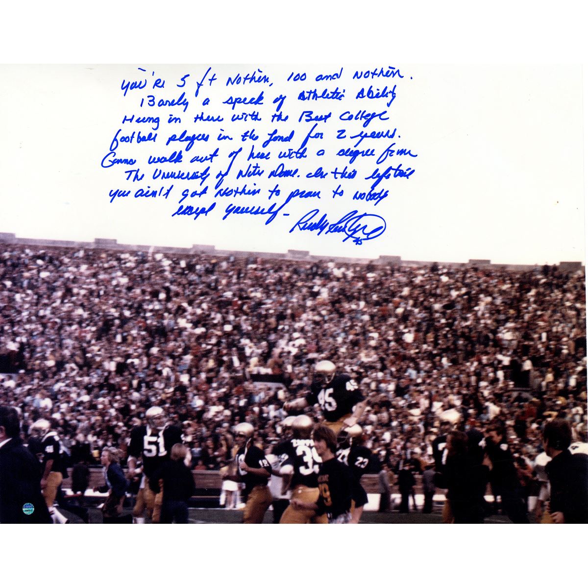 Rudy Ruettiger Signed Carried off the Field 16x20 Photo w/ " Long 5 Foot Nothing"Insc.