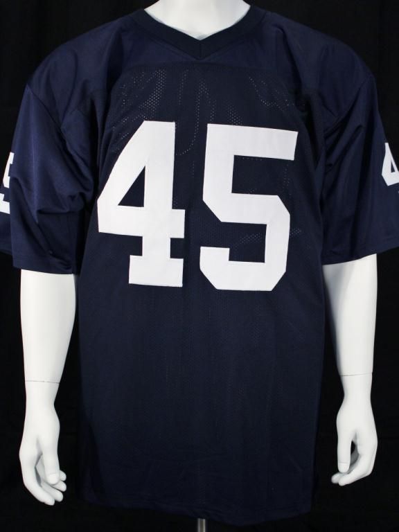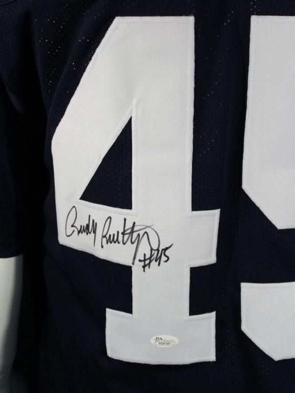 This Notre Dame Fighting Irish #45 jersey was signed by Rudy Ruettiger. Ruettiger was the subject of the movie Rudy that captured the hearts and minds of millions with his story of determination and heart. This is a must for any Fighting Irish fan. This jersey comes with a certificate of authenticity from JSA (James Spence Authentications) one of the most trusted names in the memorabilia business.