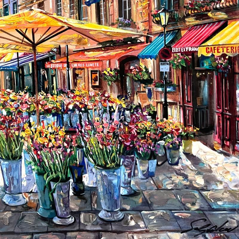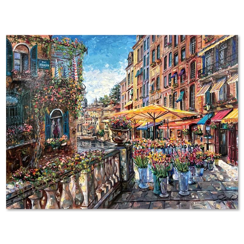 "Rue Felicien" is a hand embellished limited edition publisher's proof on stretched canvas by Vadik Suljakov, numbered inverso 1/5 and hand signed by the artist. Includes Letter of Authenticity. Measures approx. 18" x 24" (image). There may be minor wear on the corners and edges.