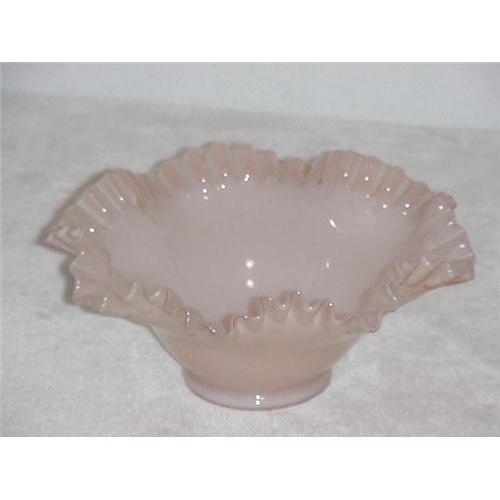 A peach colored glass bowl, 9" in diameter, 4" tall, 3 1/4" diameter at the base. Originally the bowl sat in a silverplated frame to make a brides basket, of the victorian era. The bowl is in perfect condition, there are no chips or cracks, just a bit of dirt. A nice bath will make a big difference. If you can find the right stand for the bowl you'll have a real prize.