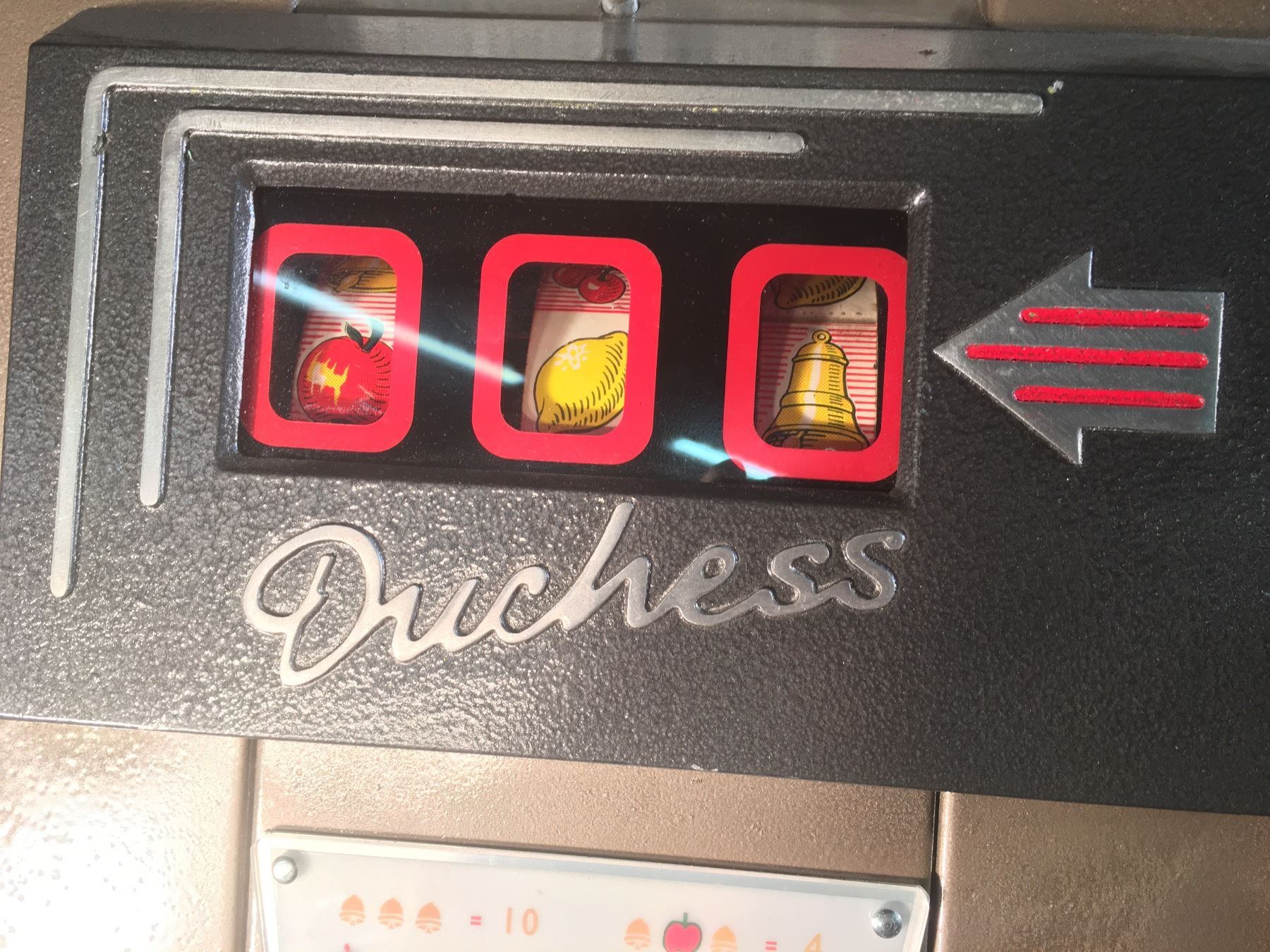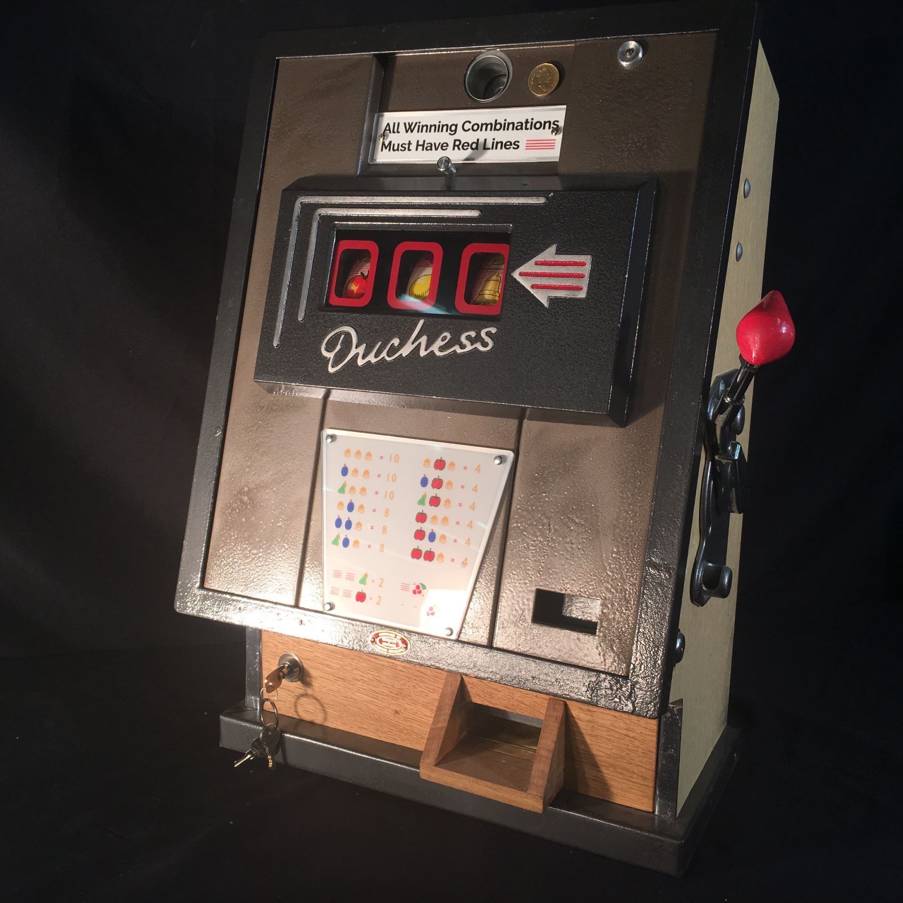 Ruffler & Walker "Duchess" Loonie Slot Machine, Made In England. Works great and comes with all keys.