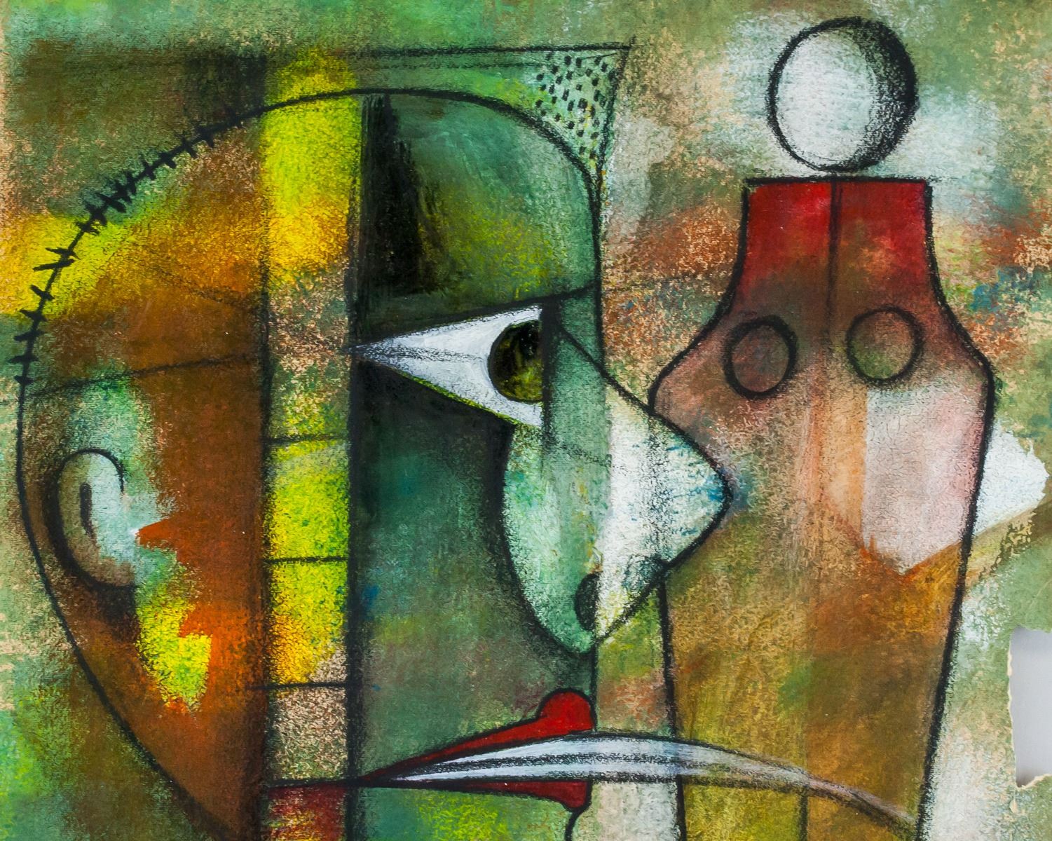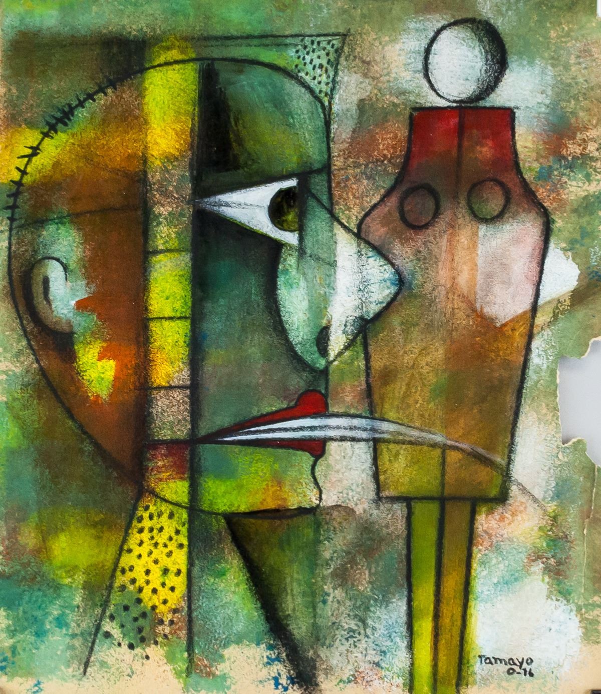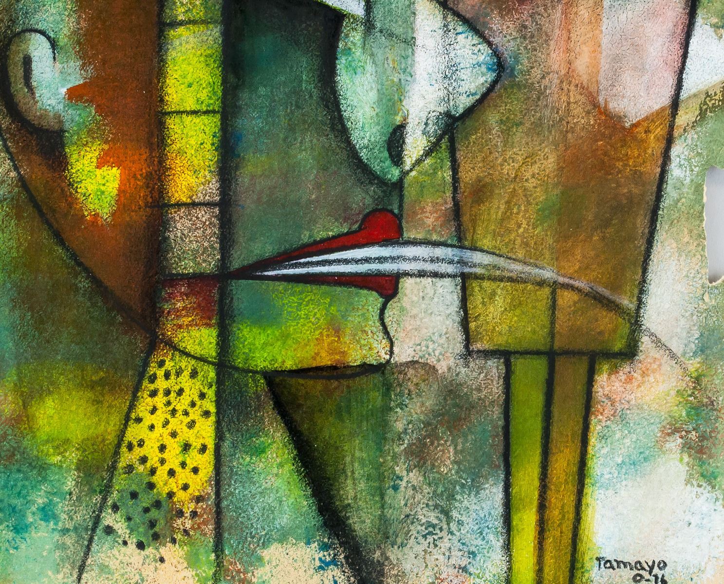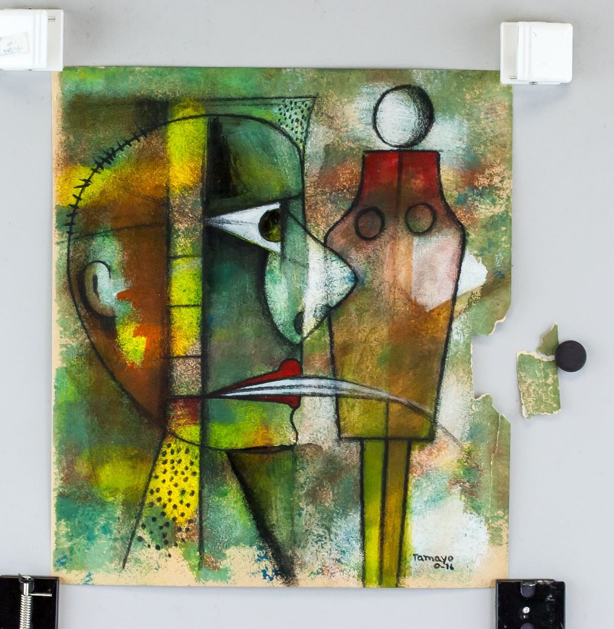 Pastel on paper. Featuring an abstract head portrait. Signed Tamayo 0-76 on the lower right corner. Attributed to Rufino Tamayo (1899-1991, Mexican). Right edge margin damaged, missing section. 31.5 x 27.5 cm (12.4 x 10.8 inches). PROVENANCE: Upper New York estate