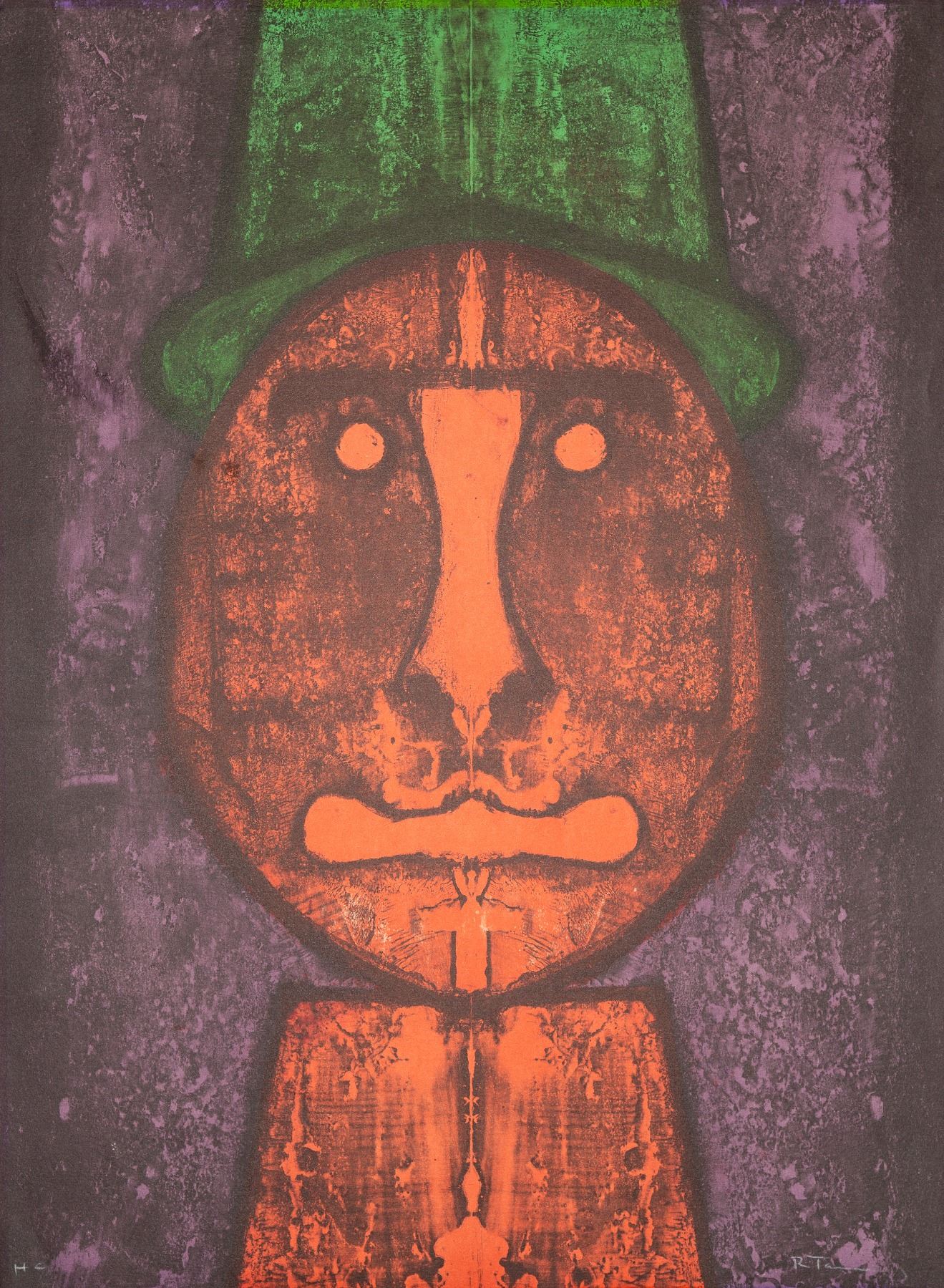 Lithograph in color on paper. Signed, and marked "HC" along lower edge. Tamayo created his well-known a series of "Cabeza" (Head) pieces during the 1960s and 1970s.