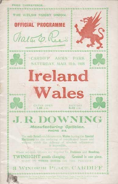 Rugby. 1928 (10 March) Rare Wales v Ireland programme
