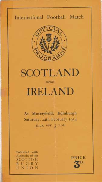 Rugby. Scotland v Ireland programmes for 1934 and 1938