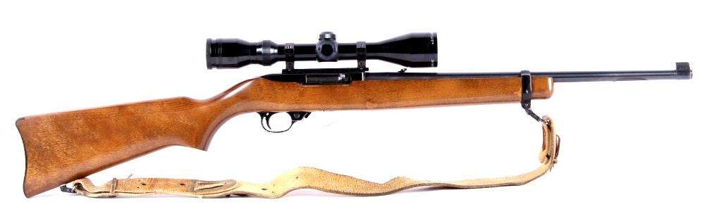 The lot features a Sturm, Ruger & Co. Model 10/22 .22 long rifle auto loading carbine. The carbine shows great condition and comes in the box. Serial number 236-98465. The firearm also has a World Class Plus Tasco 3x-9x44 scope.