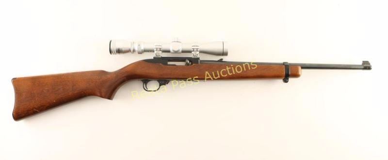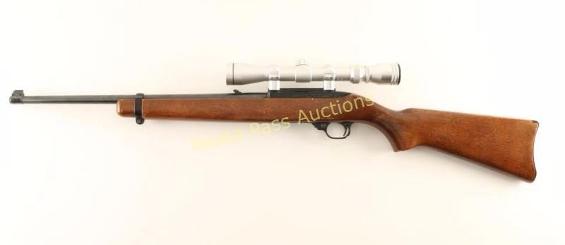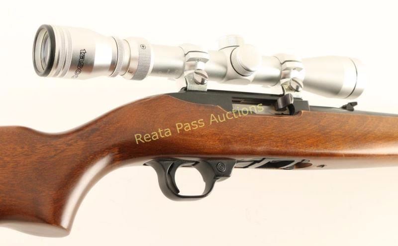 Blued steel and blackened alloy, semi-automatic, detachable rotary magazine fed rifle with a 18.5" barrel, adjustable rear sight, one-piece wood stock, plastic butt plate and a Tasco 3-9x32 scope. Bluing has edge wear at the muzzle and on the end of the charging handle. Alloy has edge wear on barrel band, receiver and trigger group. Wood has scuffs and rubs with finish loss on the pistol grip. Buttplate has a few scuffs and scrapes. Includes one 10-round magazine. Action works well. Bore is bright and shiny with sharp rifling. Condition is very good. *Modern Firearm*