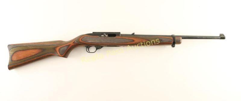 Blued steel and blackened alloy, semi-automatic, detachable rotary magazine fed rifle with a 18.5" barrel, adjustable rear sight, one-piece laminated wood stock and a plastic butt plate. Bluing has a ding at the muzzle and the front sight, surface rust on the bottom of the barrel and edge wear on the end of the charging handle. Alloy has dings on the edge of the scope rail. Wood has very few scuffs and rubs. Buttplate has a few scuffs and scrapes. NO magazine. Action works well. Bore is bright and shiny with sharp rifling. Condition is very good. *Modern Firearm*