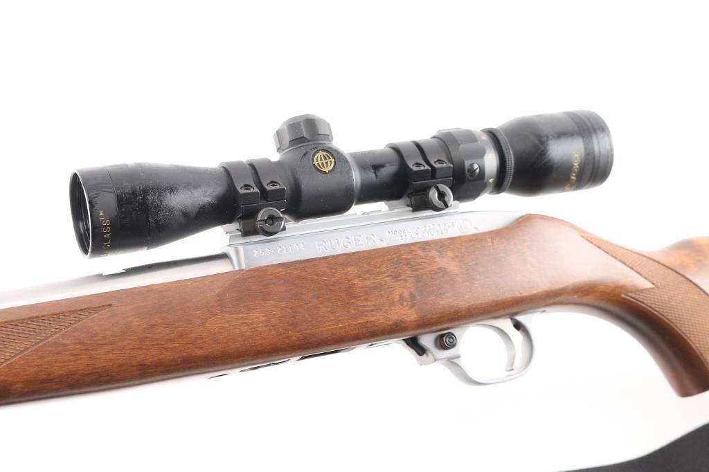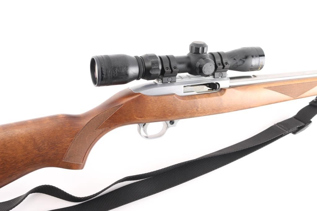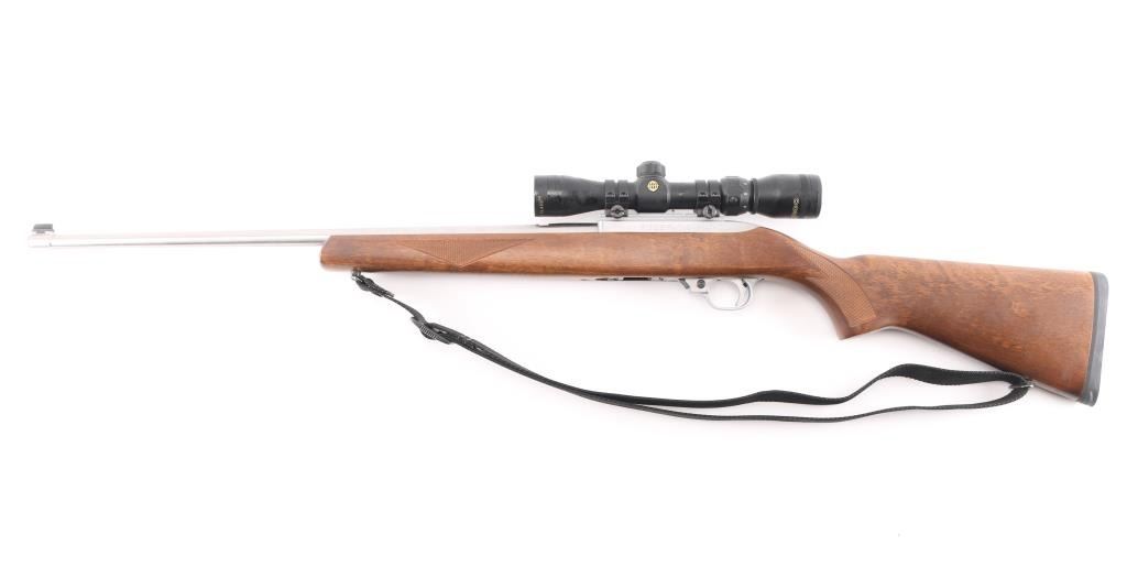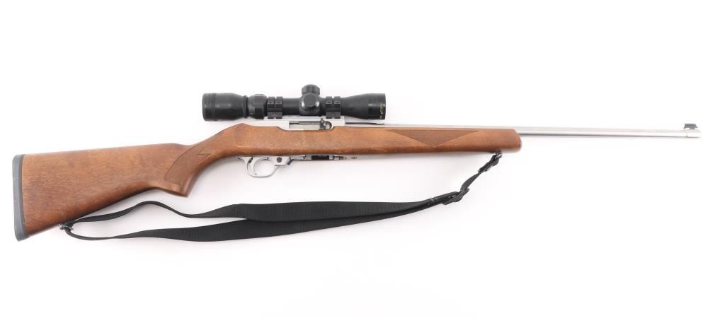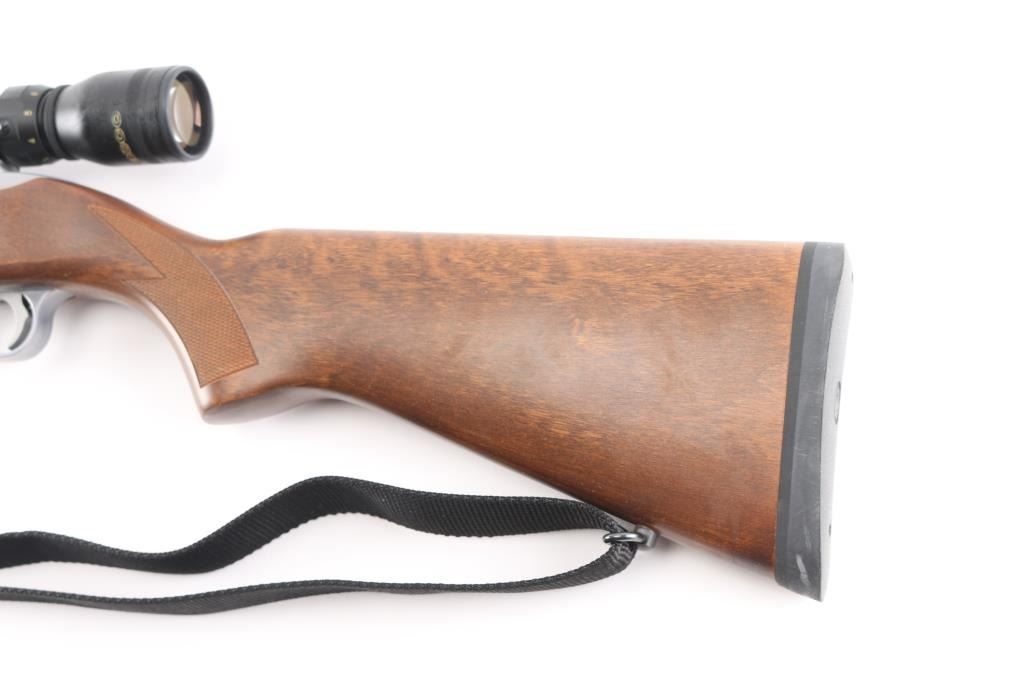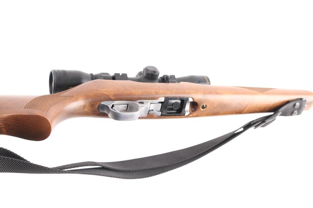 Stainless model 1149 was a Lipseys Distributor Exclusive Limited Edition circa 2002. Beech, Sporter stock with checkering and a 22" stainless steel barrel with blade/bead front sight and flip-up rear sight, sling swivels on front and back of stock and factory rubber buttpad. Comes with mounted Tasco 2x-8x,32 scope, clear optics. Scope has some sticky substance that needs to cleaned off. One 10 rd rotary magazine and black nylon sling.. Bore is pristine, finish and wood are excellent.Condition is NRA Excellent. Modern Firearm.
