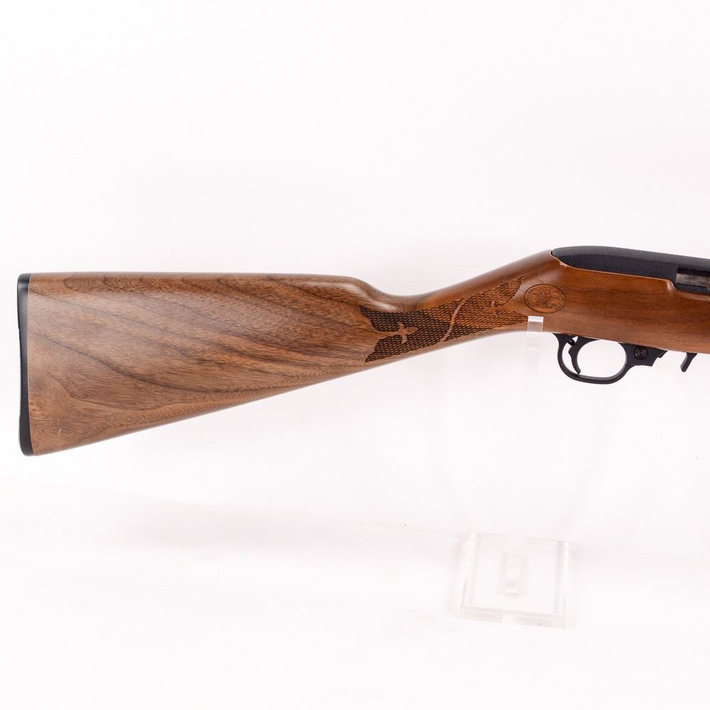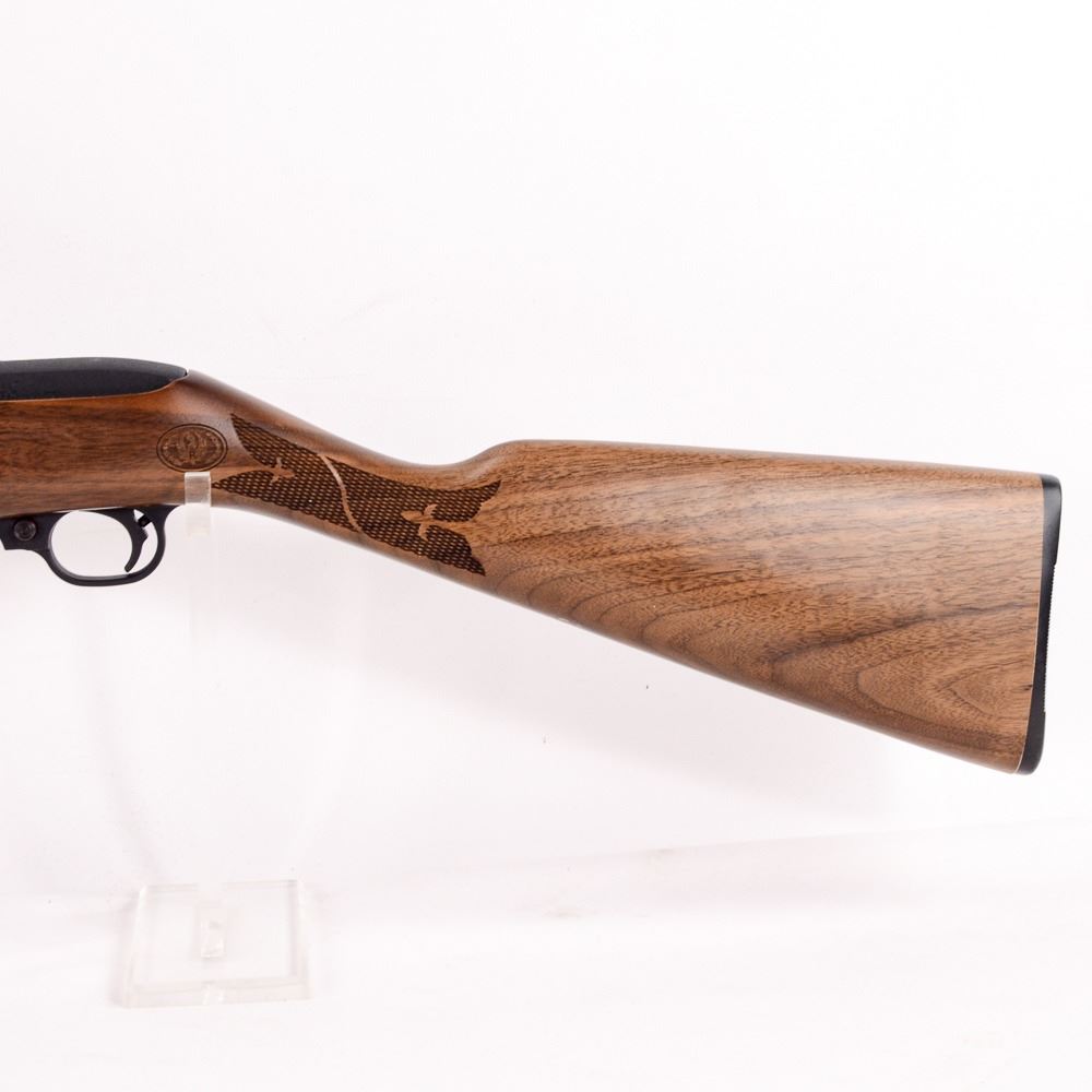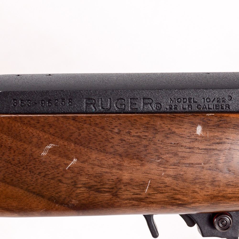 Ruger 10/22 .22LR with deluxe Schnabel and checkered stock in very good condition with minor wear and dings. Very unusual and beautiful factory stock. S/N: 353-96258