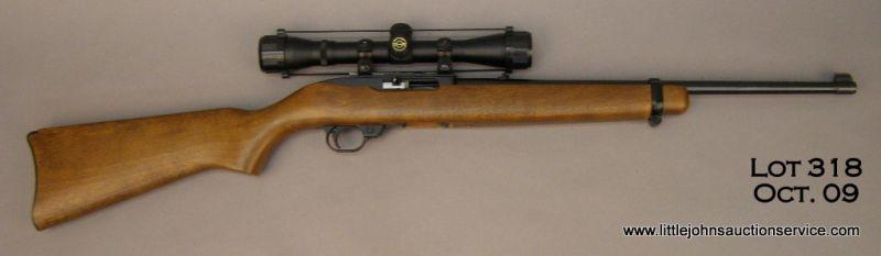 Ruger 10/22 Carbine #128-44391. .22LR, Simmons 4x32 scope, walnut stock, Excellent all-around cond. w/ one 10 rd rotary mag. Est. $125-$250.
