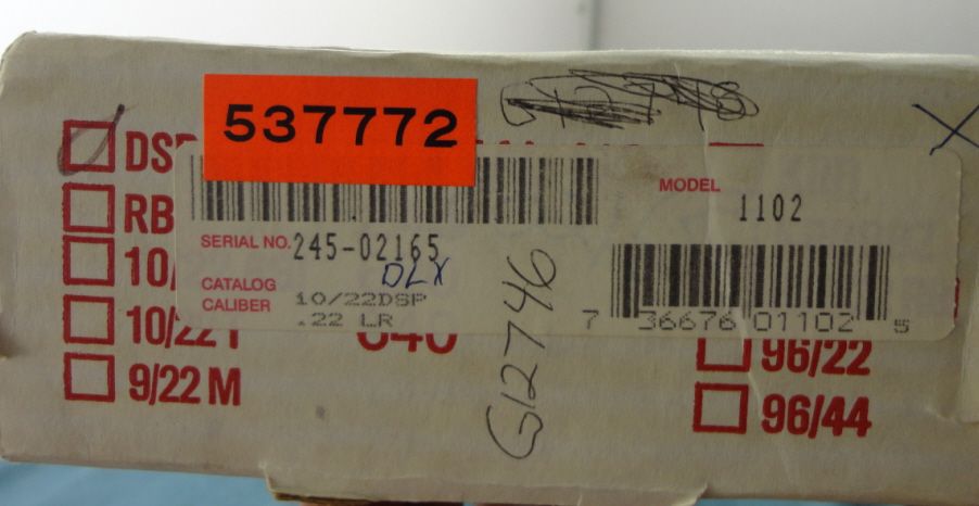 #24502165; 22 cal. w/18 1/2" bbl. Blued finish & Deluxe checkered Walnut stock w/rubber butt pad. Condition appears near new w/only light handling marks. Includes original Ruger box.