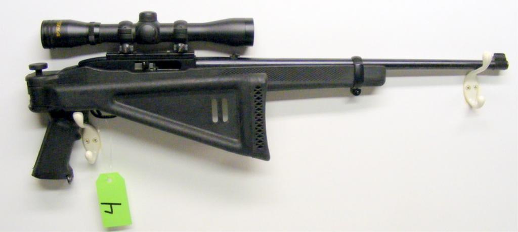 Ruger 10/22 semi-auto rifle in 22 long rilfe and with Black Warrior folding stock and BSA Classic 4x 32 fixed power scope. Scope is nice and glass clean. Action and bore are very good. This will be a great little shooter. One ten round magazine.