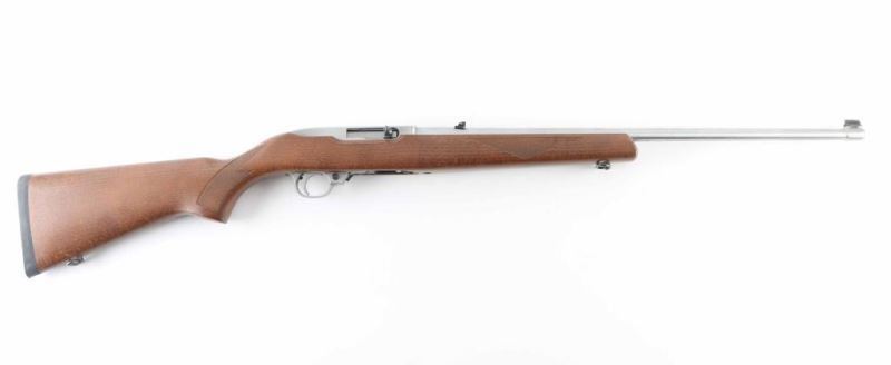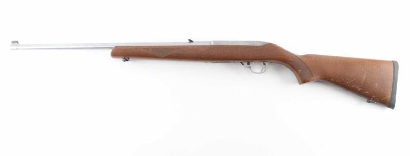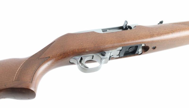 Stainless model 1149 was a Lipsey's Distributor Exclusive circa 2003. It Features a Beech, Sporter stock with checkering and a 22" barrel. Includes 10 round Ruger magazine. Gun has seen some use however the barrel and receiver look great. The wood stock is in good shape except for some marring or scuffing on the left side of the butt up to the wrist with a minor blemish to the wrist checkering. NRA Good+ Modern Firearm