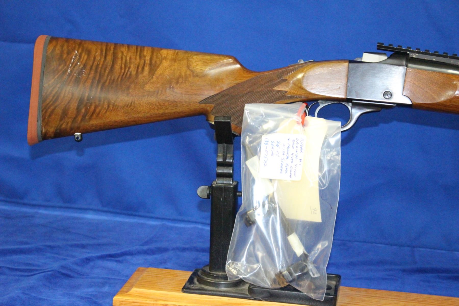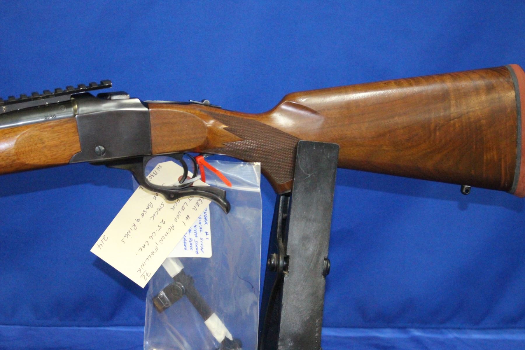 25-06 cal.; Short Lever Action; Falling Block; 26" Barrel; Good Clean Bore; Blueing is 80-90%; Checkered Wood Stock; Scope Base & Rings; S/N 133-07522