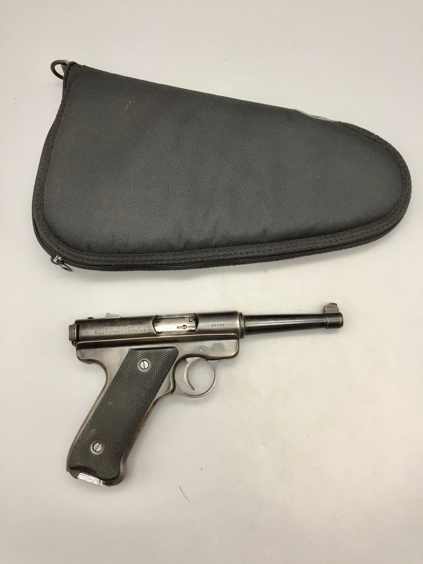 Description: Presented for sale in this lot is a nice Ruger .22 caliber long rifle automatic pistol which includes a nice zip up carry case.