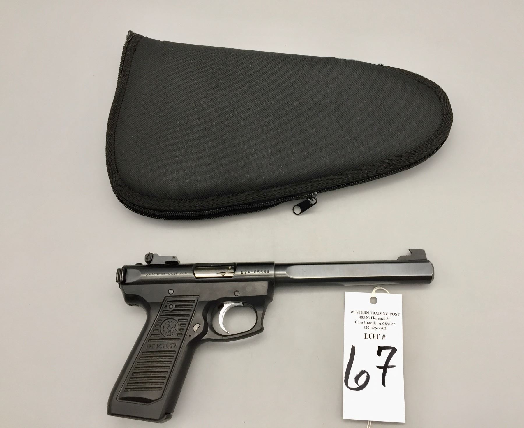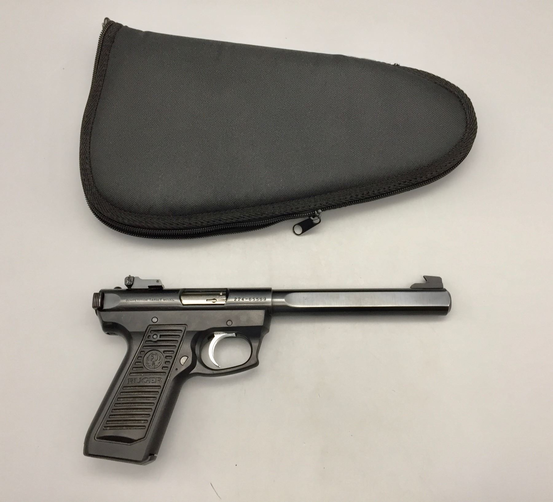 Description: Offered for your consideration is this Ruger, .22 caliber long rifle target model pistol which includes a nice zip up carry case.