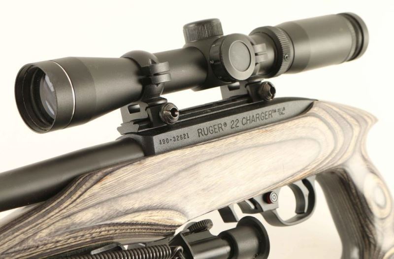 Pistol variation of the magazine-fed semi-automatic 10/22, chambered in .22 Long Rifle and manufactured circa 2009. Features a matte blued 10" barrel with no provisions for sights, NcStar 2-7x 32mm scope with illuminated reticle, adjustable bipod, factory 10 round rotary magazine, push button safety, smooth charging handle, textured trigger, black crinkle finished aluminum receiver, and one-piece smooth grey laminated wood pistol grip stock. Includes a black nylon padded soft case with a large pocket. Pistol exhibits approximately 99%+ of it's original finish showing few minor handling marks with no major wear observed. Action is smooth, bore is excellent, optics are sharp and the wood stock is fine. Condition is near NRA Perfect in case. ***Modern Firearm***