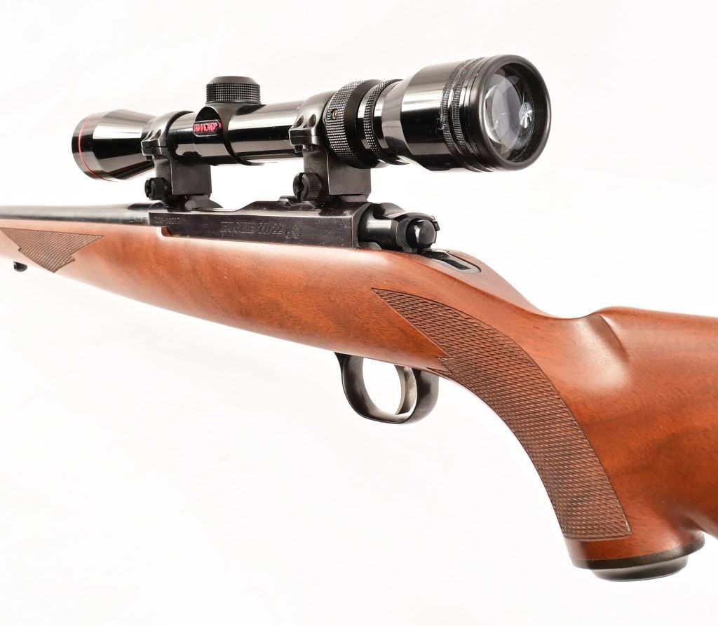 S/N 72010217. Simmons 3x8 scope, 20" barrel, checkered wood. Like new condition.