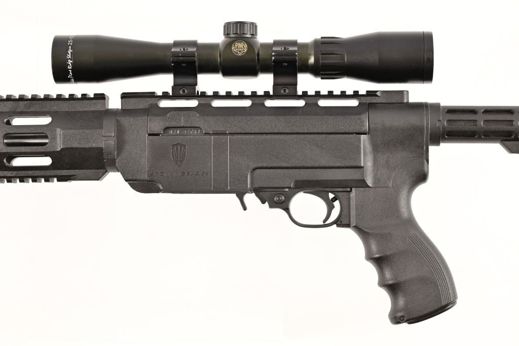 S/N 821-87761. Archangel tactical stock. Pine Ridge 2.5-7x scope, 18" barrel. Modern