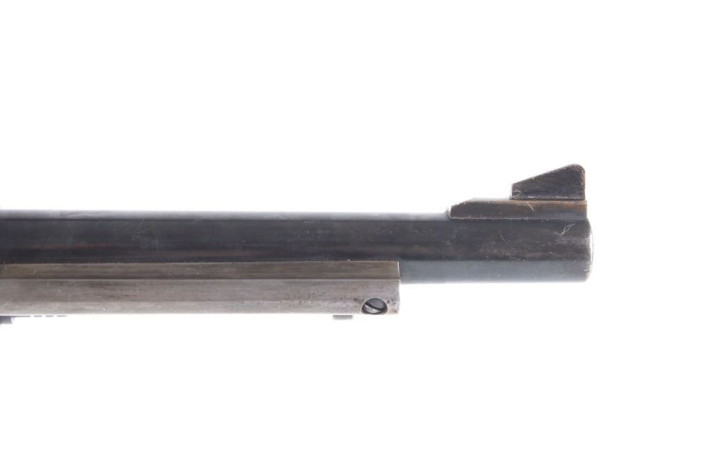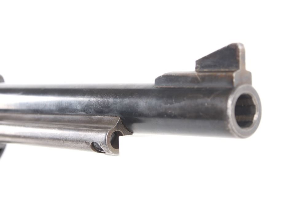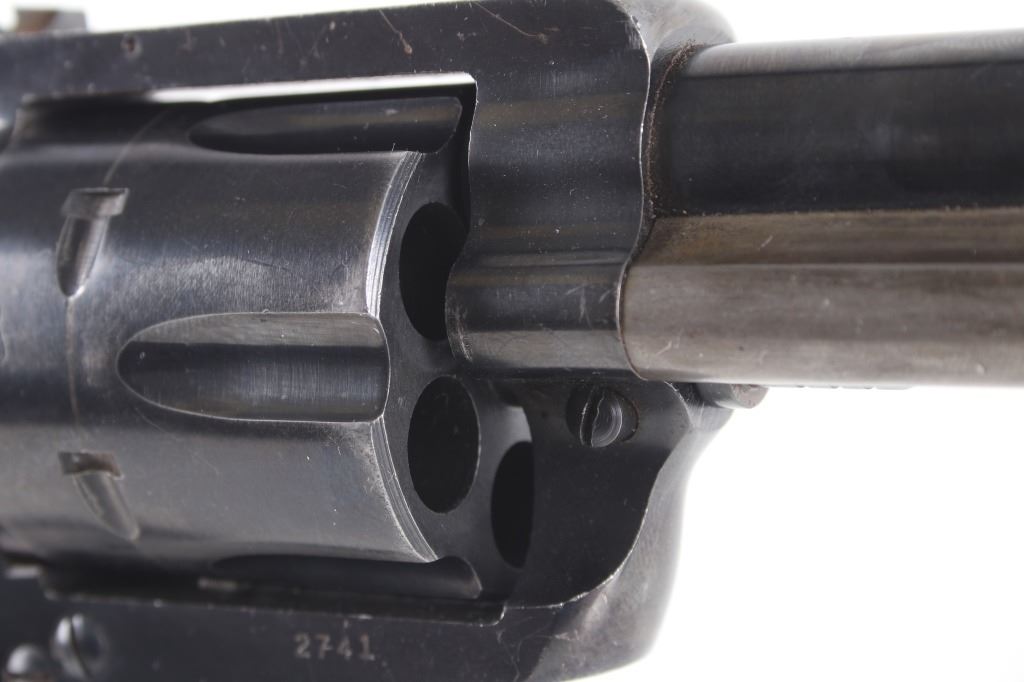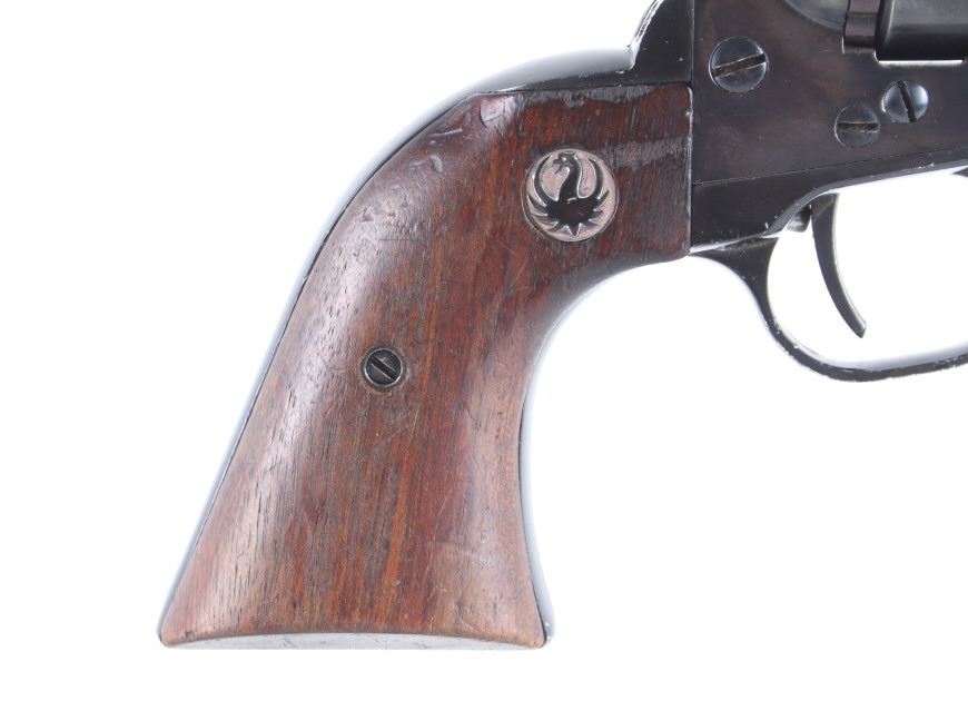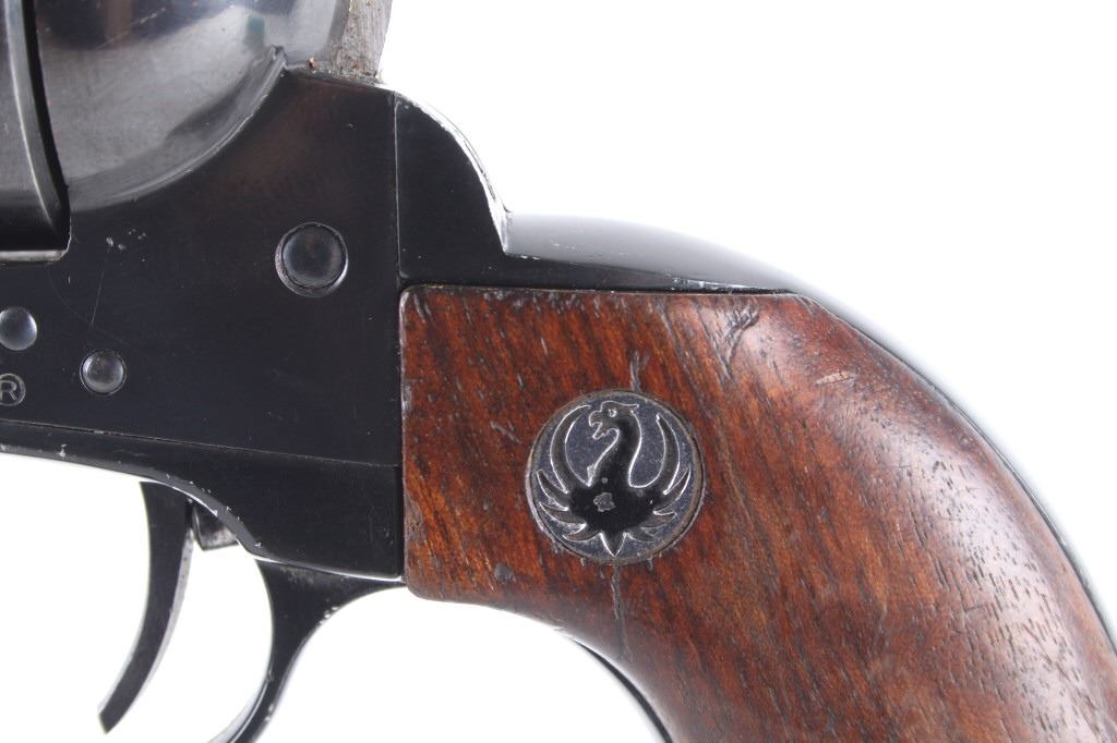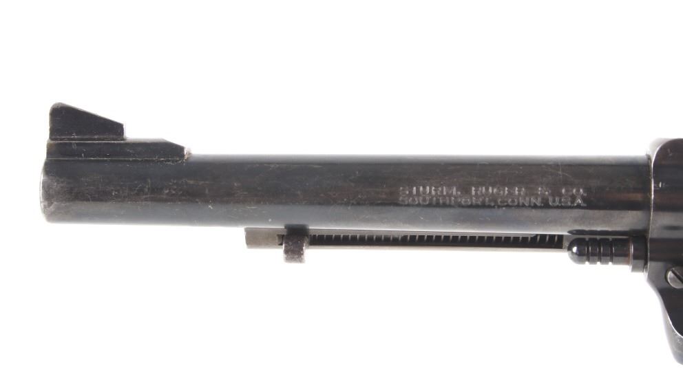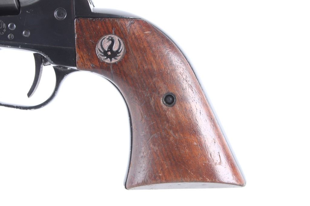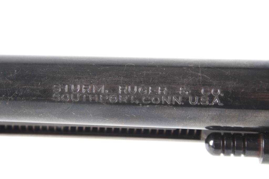 Featured in this lot we have a Ruger & Co Blackhawk single action revolver chambered in .44 Magnum caliber. This revolver was manufactured in 1957 by Ruger & Co. The revolver displays a 6 1/2" long round barrel, six shot fluted cylinder, walnuts grips, single action trigger system, and manual ejector rod. The barrel is marked across the left reading "STURM, RUGER & CO SOUTHPORT, CONN. U.S.A." with the frame marked "RUGER BLACKHAWK .44 MAGNUM CAL." with the Ruger logo. This revolver shows good mechanical condition with a smooth action and crisp trigger pull. The pistol features a blue'd finish across the barrel, frame, and cylinder with the grips showing Ruger medallions on the top. The revolver is in good condition overall with some wear across the finish due to use and storage. The piece weighs 2lbs 8oz. Serial Number: 2741. This is a modern firearm and requires a FFL transfer or NICS background check.
