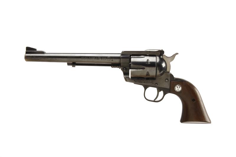 Condition: Excellent with just a little wear and a cyliDesirable single action 6 shot revolver in .30 Carbine caliber! Blued finish, smooth wood grips, 7 1/2" barrel with target sights, good bore and action. Condition: Excellent with just a little wear and a cylinder ring. A really fun gun to shoot that is now out of production.