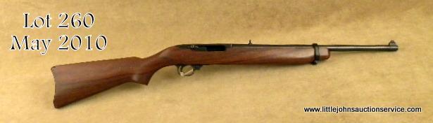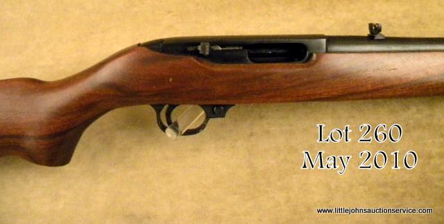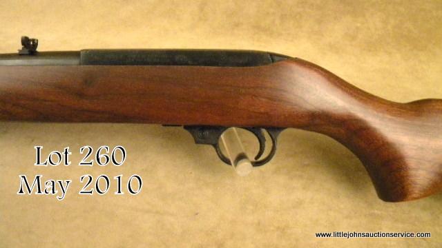 Ruger Carbine #102-31863, .44 Mag., 18.5" barrel, blued finish with walnut stock. Rifle is in excellent condition overall, showing light surface scratches and blemishes on the right side of the stock. Est. $250-500.