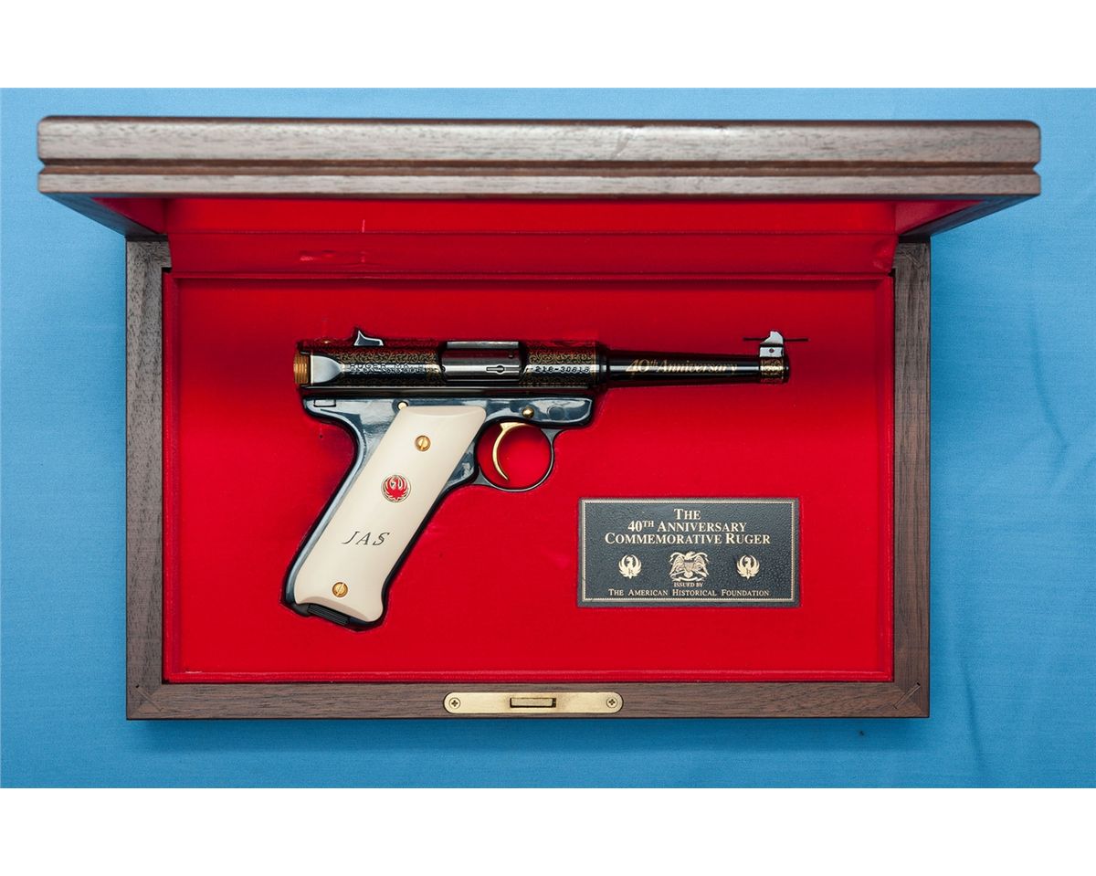With a wood case with glass lid and black/gold commemorative plaque inside.