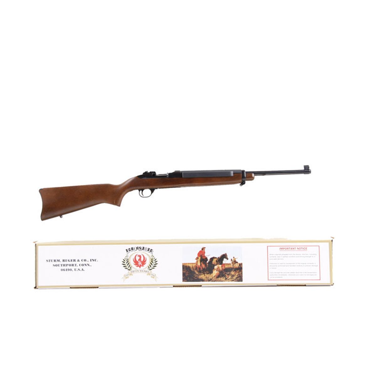 Ruger Deerfield Carbine Cal .44mag SN:630-02768, Semi-auto .44 Magnum carbine similar to the Mini 14. Blued finish, smooth wood stock with steel butt plate and synthetic hand guard, 18 1/2" barrel with receiver mounted flip up rifle sight, rotary magaziSN:630-02768, Semi-auto .44 Magnum carbine similar to the Mini 14. Blued finish, smooth wood stock with steel butt plate and synthetic hand guard, 18 1/2" barrel with receiver mounted flip up rifle sight, rotarymagazine, good bore and action. Includes original box, manual, and scope rings. Condition: Near new with little sign of use. No magazine.