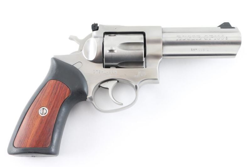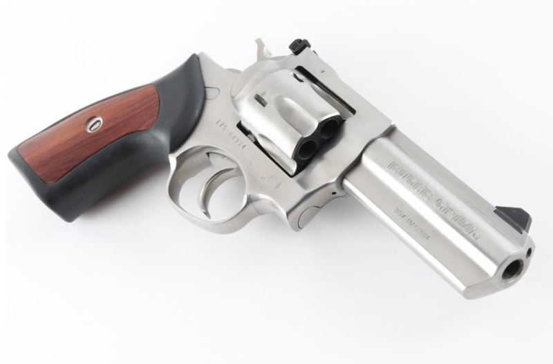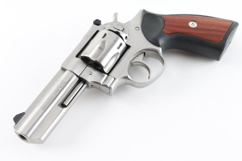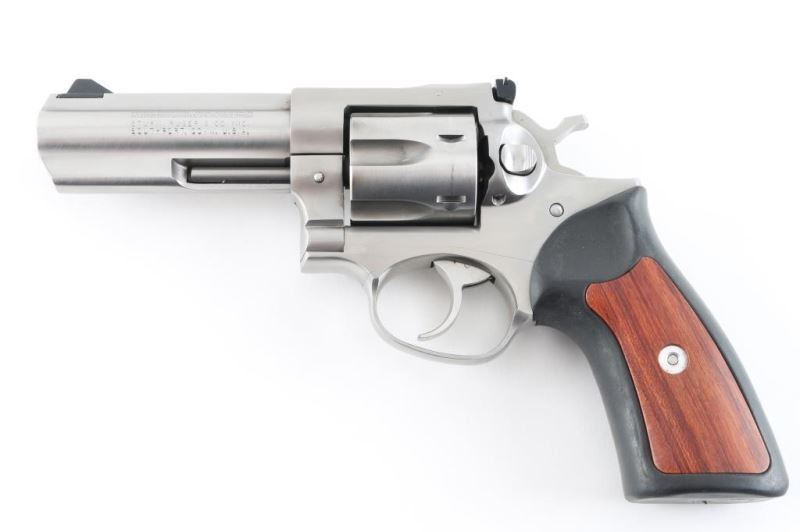 Double action revolver features stainless steel construction, 4" barrel with full length underlug, blade front & adjustable rear sights, smooth polymer grips with wood insert panels. Bore and charge holes are very good. External appearance is excellent with minor handling marks. Action is smooth with tight lock-up. Condition is NRA Excellent *** Modern Firearm ***