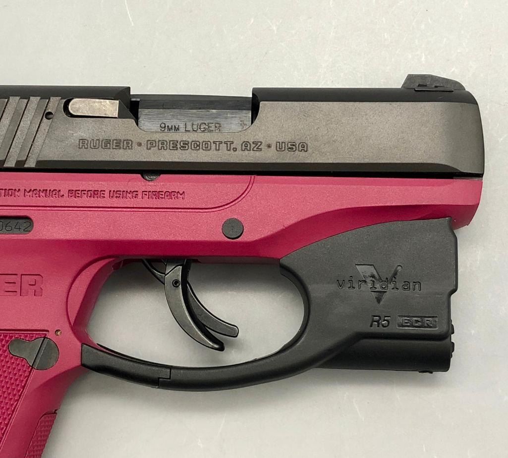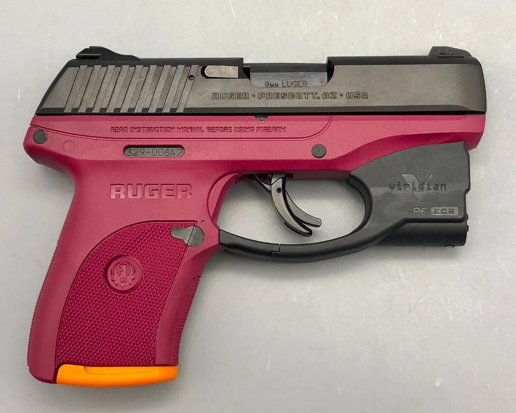 Up for consideration is this Ruger LC 95 9mm pistol with box. This pistol is in very lightly used condition and has its original box. It also has a Viridian Reactor holster and the red dot laser sight. It is fuchsia in color and was only fired a handful of times. MAKER: Ruger. Serial No. 329-00642. APPROX AGE: Modern. SIZE: Barrel length is 3 inches. CONDITION: Good for its age, normal wear expected. Please look closely at the pictures as they are an important part of our description and are hereby incorporated into the description, specifically with regards to condition. SHIPPING: There will be a $25 handling / packaging fee for shipping this lot. The actual cost of postage will be added on top of that. BUY IT NOW: If you would like to buy this item now, without waiting for the auction day to bid on it, we do offer this option (which is available up to 48 hours before the actual auction starts). The “Buy it Now” price is the high estimate of this lot (plus applicable fees and the Buyer's premium is discounted to 10% when using the Buy it Now option). If you would like to exercise this option, you must contact us by email (or phone as long as you talk to someone live). Reference this lot number and your intention to "Buy it Now." *****This firearm requires an FFL Transfer*****