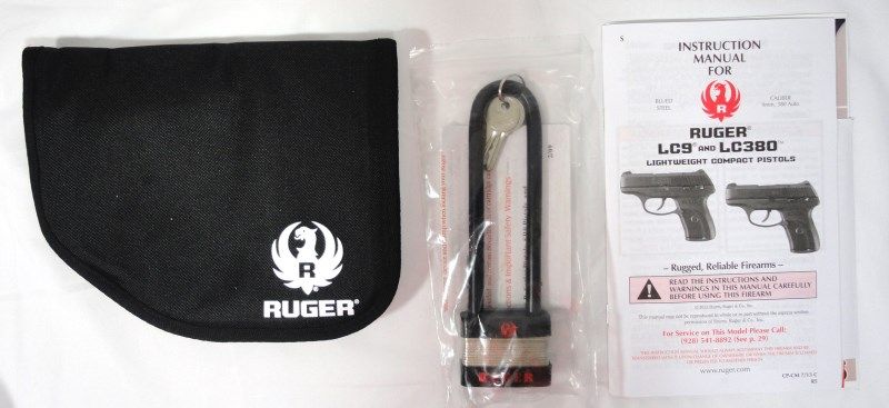 Ruger LC9 9mm. New in box. Semi-automatic pistol. Blue finish. Polymer frame. Capacity: 7+1. 1 magazine. 7rd magazine. Overall lengtH: 6". sights: fixed 3-dot. EST:$425-$475