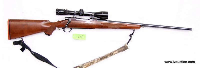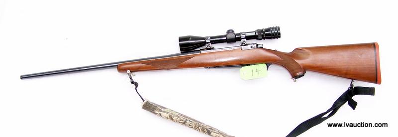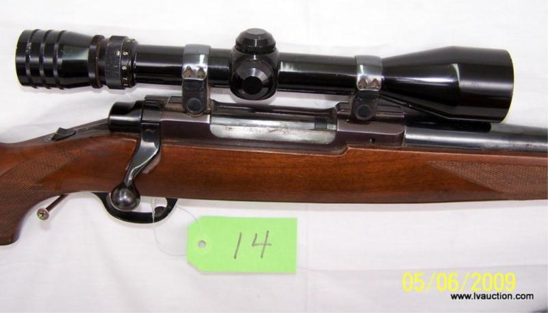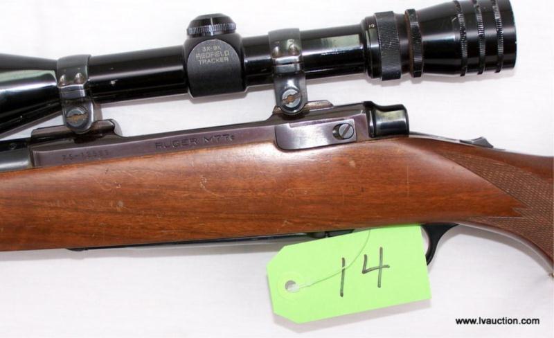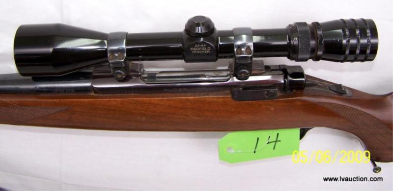 A smooth bolt action rifle with a redfield tracker 3x9x scope and sling. The action is what you would expect from a ruger M77 Smooth